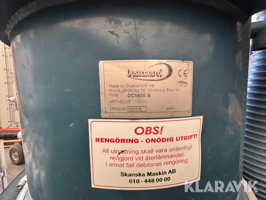 Stoftavskiljare Dust Control DV5800A