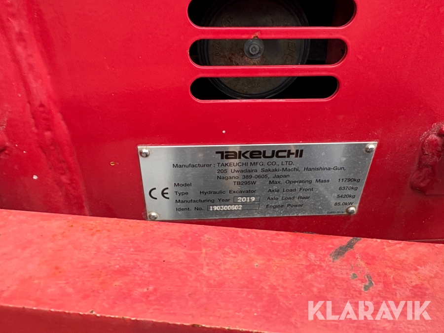 Grävmaskin Takeuchi TB295W vagn med redskap
