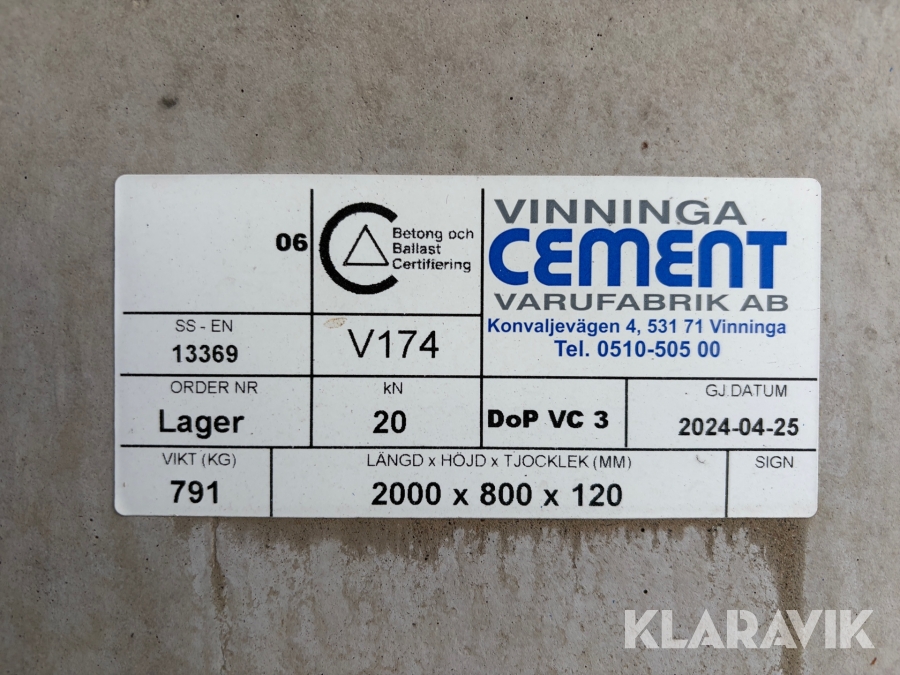 L-Stöd Vinninga Cement 2000 x 800 x 120 mm Släta 20 kn 12 st