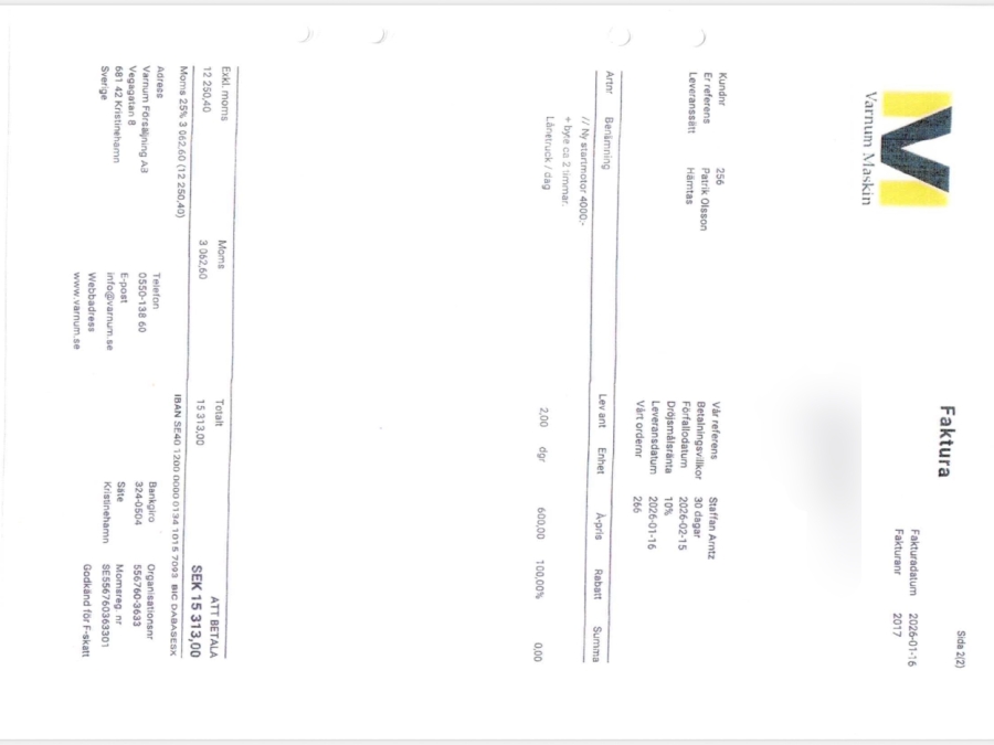 Boka frakt? Det finns ingen specifik information om frakt för just det här objektet, men om du skickar oss en förfrågan via vårt fraktformulär, så undersöker vi möjligheten. Paket, EU-pall eller större maskin? Klaravik har fraktavtal med Schenker och i de fall vi kan hjälpa till med frakt gäller det objekt som ryms i paket eller inom en EU-pall (upp till 120*80 cm och 990 kg). Det går att beställa frakt inom Sverige, dock inte till utlandet. Vid frakt på större maskiner rekommenderar vi gärna transportföretag som du kan kontakta.