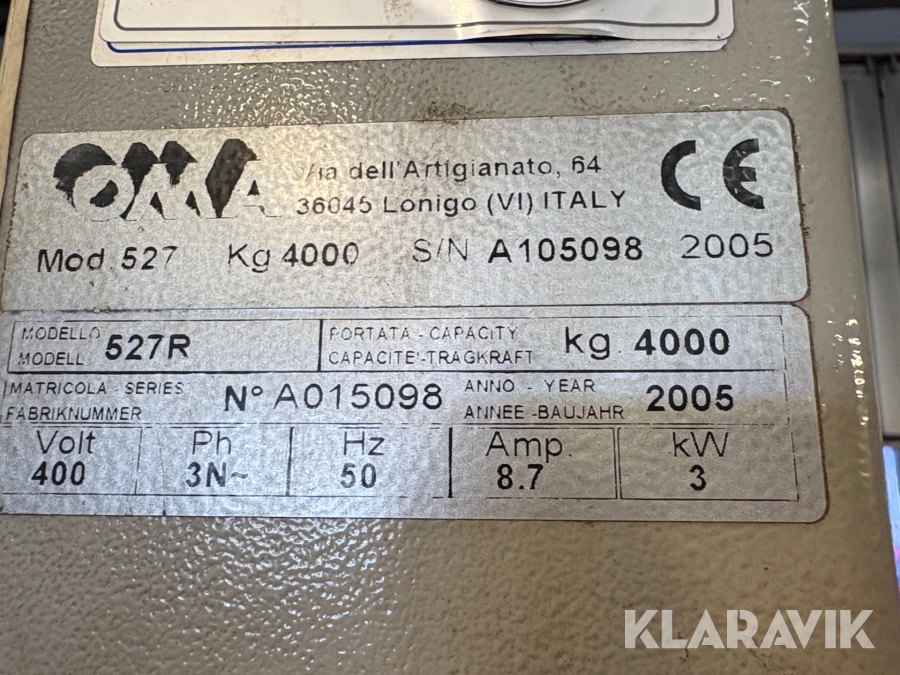 Fyrpelarlyft OMA 527R