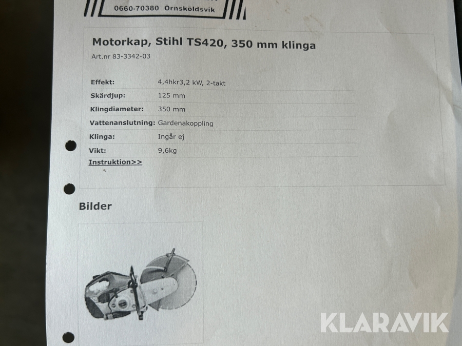 Boka frakt? Det finns ingen specifik information om frakt för just det här objektet, men om du skickar oss en förfrågan via vårt fraktformulär, så undersöker vi möjligheten. Paket, EU-pall eller större maskin? Klaravik har fraktavtal med Schenker och i de fall vi kan hjälpa till med frakt gäller det objekt som ryms i paket eller inom en EU-pall (upp till 120*80 cm och 990 kg). Det går att beställa frakt inom Sverige, dock inte till utlandet. Vid frakt på större maskiner rekommenderar vi gärna transportföretag som du kan kontakta.