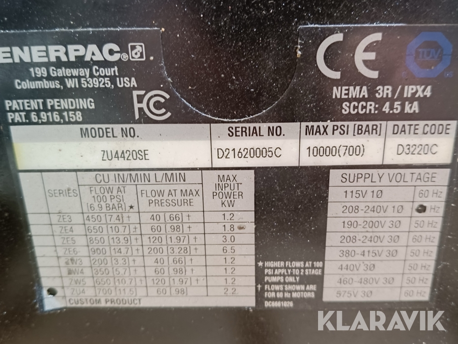 Hydraulisk utrustning Enerpac ZU4