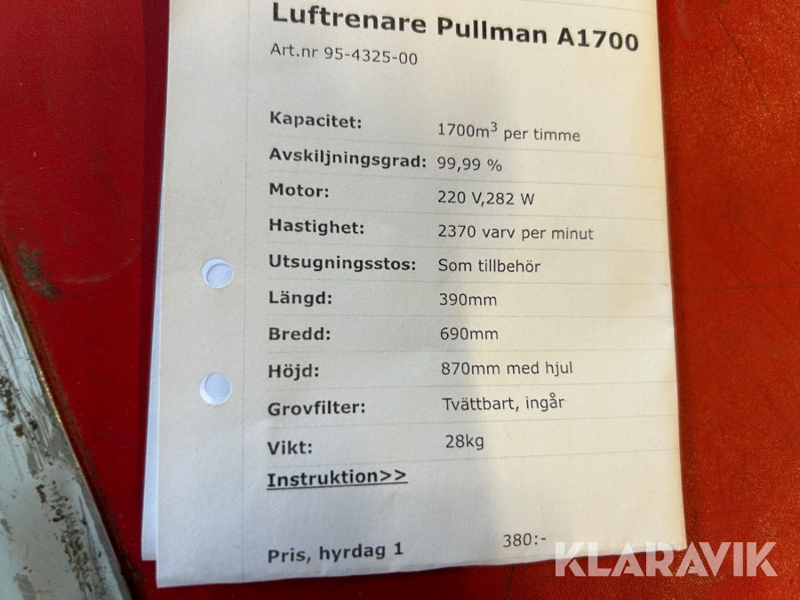 Luftrenare Pullman A1700