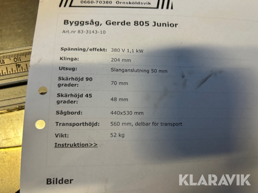 Byggsåg Gerde 805 junior