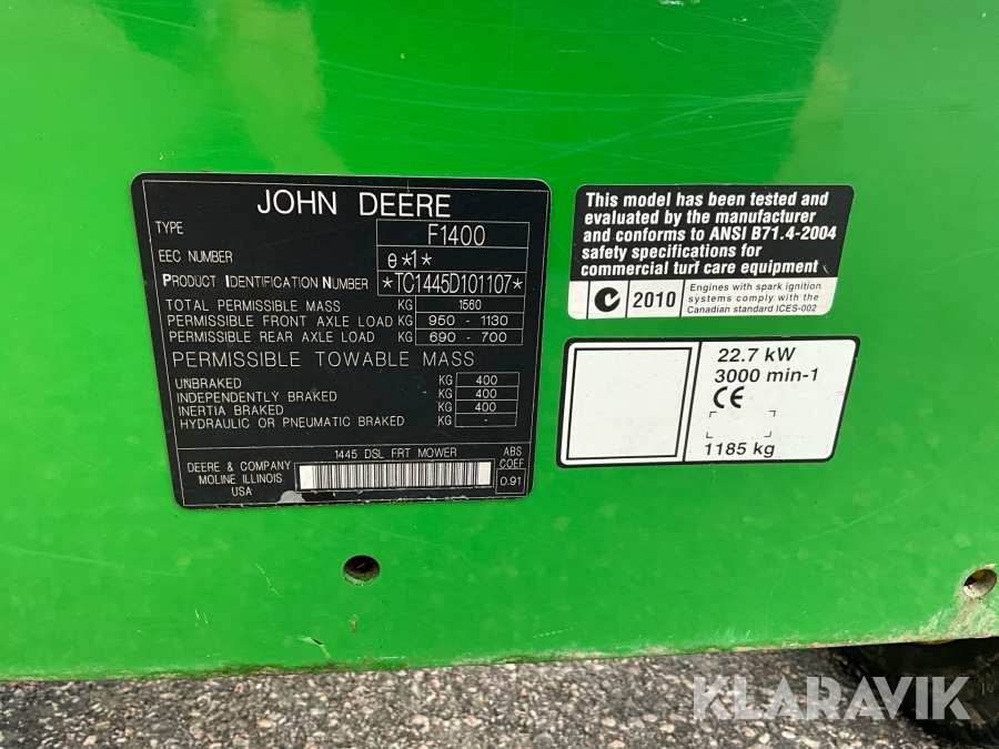 Åkgräsklippare John Deere 1445 4WD