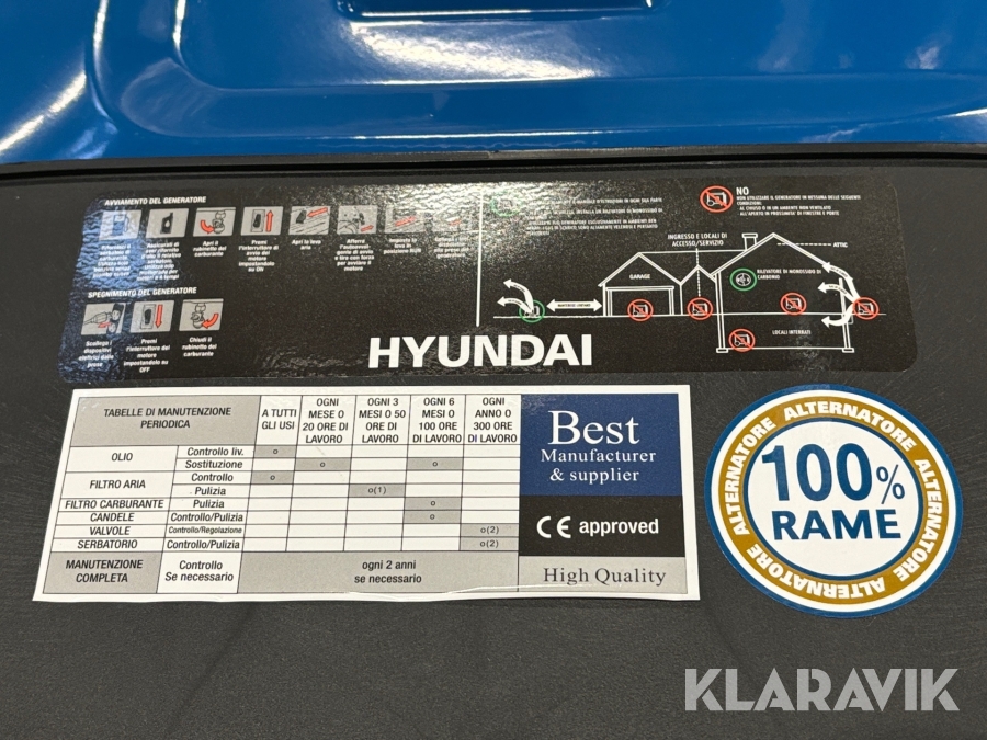Hyundai 4-takts enfas-bensingenerator med max effekt på 3.0 kW och 2,8 kW nominell effekt.
