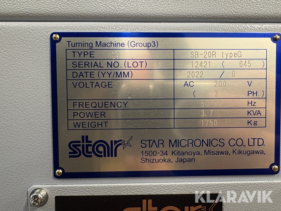 CNC-Längdsvarv Star SB-20R type G med magasin och styrskåp