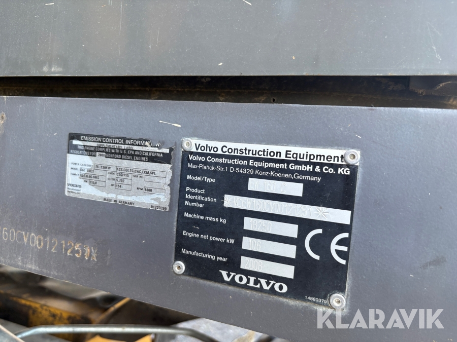 Grävmaskin Volvo EW160C med vagn och redskap