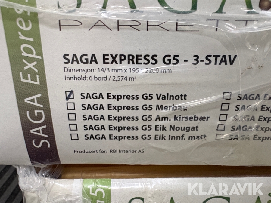 Parkettgolv Saga Express G5 3-Stav valnöt 10m2