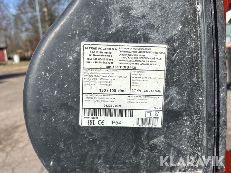 Betongblandare Altrad MK-130/T