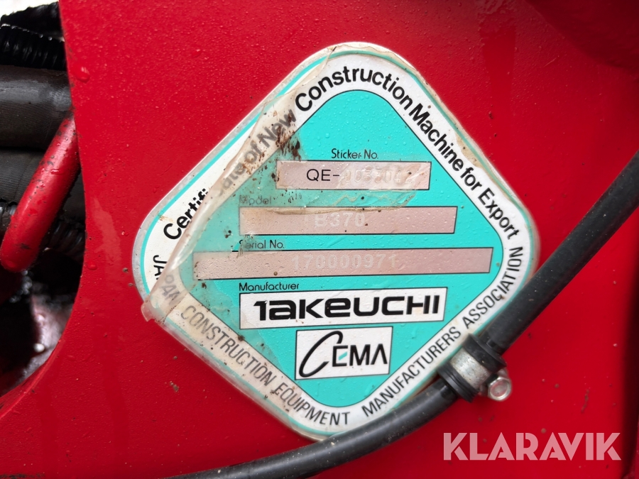 Grävmaskin Takeuchi TB370 med tiltrotator, grip och 6 st redskap