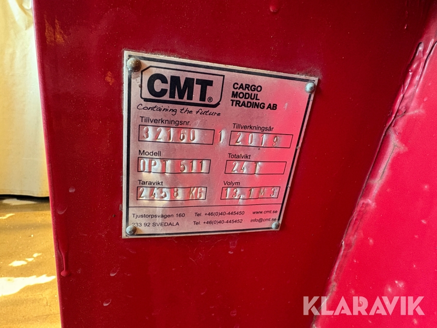 Boka frakt? Det finns ingen specifik information om frakt för just det här objektet, men om du skickar oss en förfrågan via vårt fraktformulär, så undersöker vi möjligheten. Paket, EU-pall eller större maskin? Klaravik har fraktavtal med Schenker och i de fall vi kan hjälpa till med frakt gäller det objekt som ryms i paket eller inom en EU-pall (upp till 120*80 cm och 990 kg). Det går att beställa frakt inom Sverige, dock inte till utlandet. Vid frakt på större maskiner rekommenderar vi gärna transportföretag som du kan kontakta.
