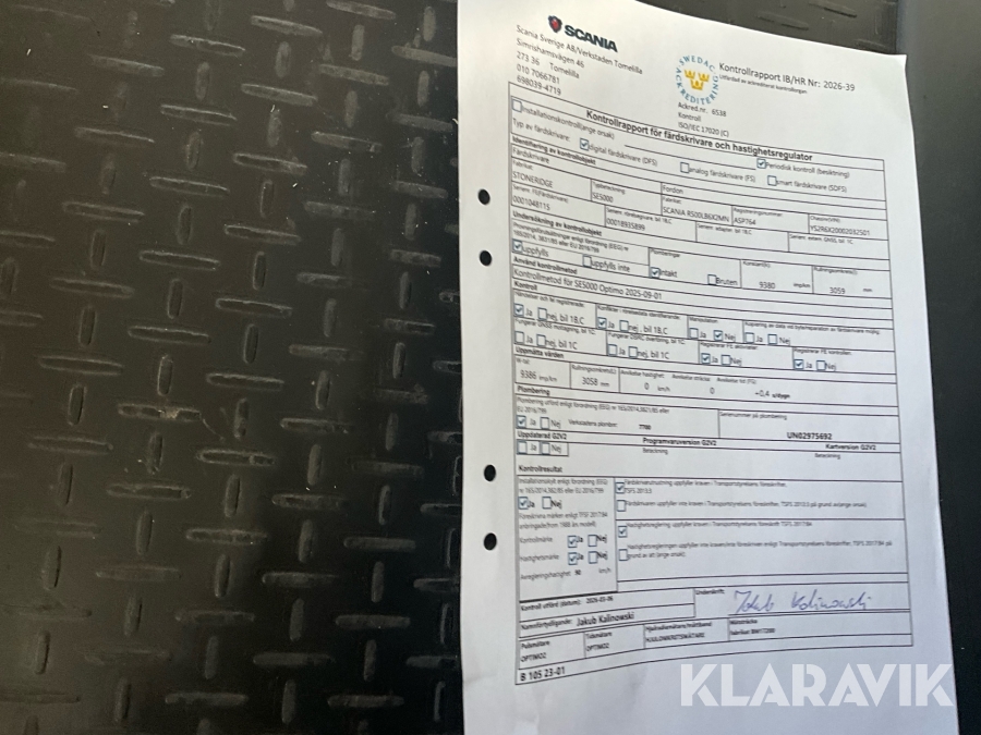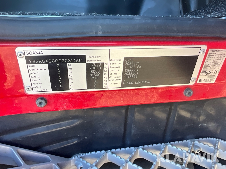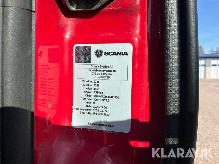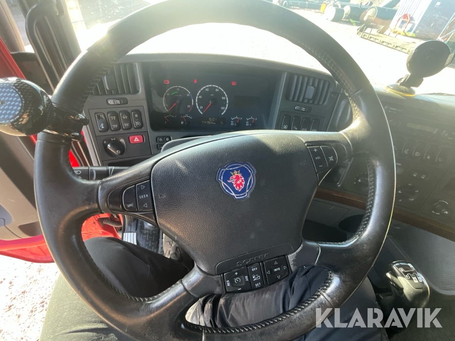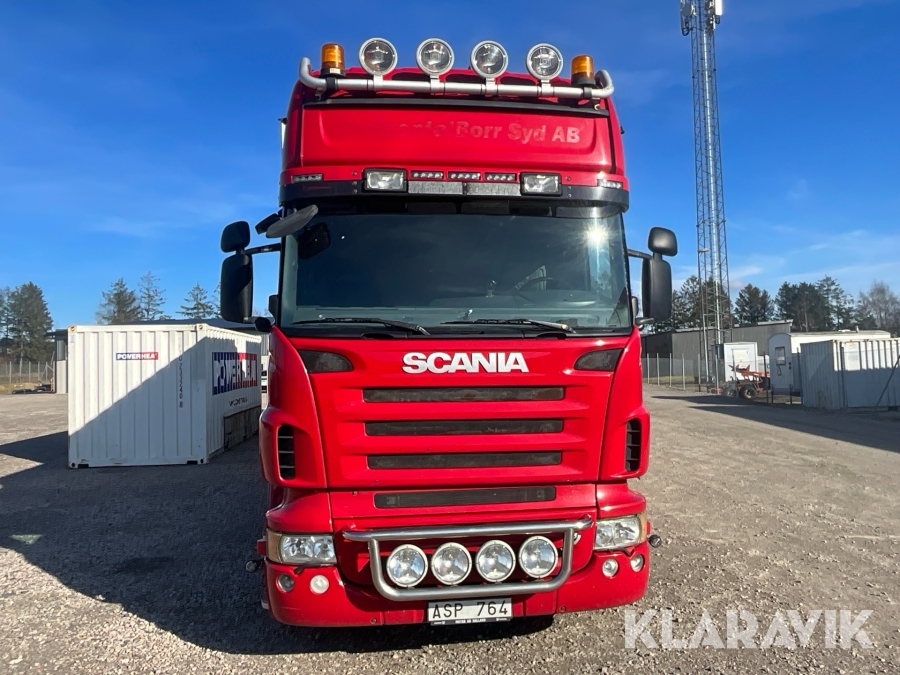 Lastbil Scania R500LB6X2MNA med släp utrustad för styrborrning