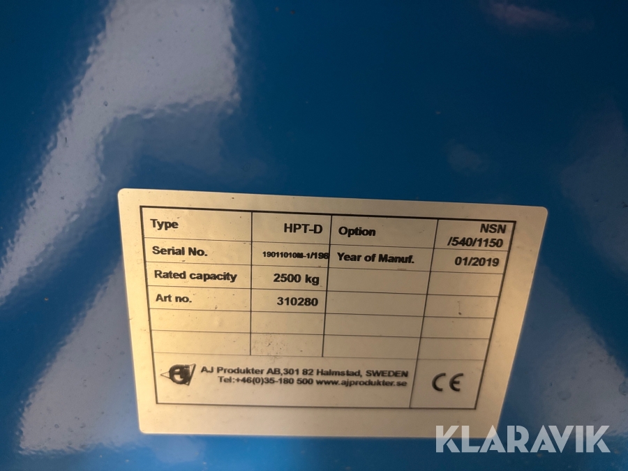 Boka frakt? Det finns ingen specifik information om frakt för just det här objektet, men om du skickar oss en förfrågan via vårt fraktformulär, så undersöker vi möjligheten. Paket, EU-pall eller större maskin? Klaravik har fraktavtal med Schenker och i de fall vi kan hjälpa till med frakt gäller det objekt som ryms i paket eller inom en EU-pall (upp till 120*80 cm och 990 kg). Det går att beställa frakt inom Sverige, dock inte till utlandet. Vid frakt på större maskiner rekommenderar vi gärna transportföretag som du kan kontakta.