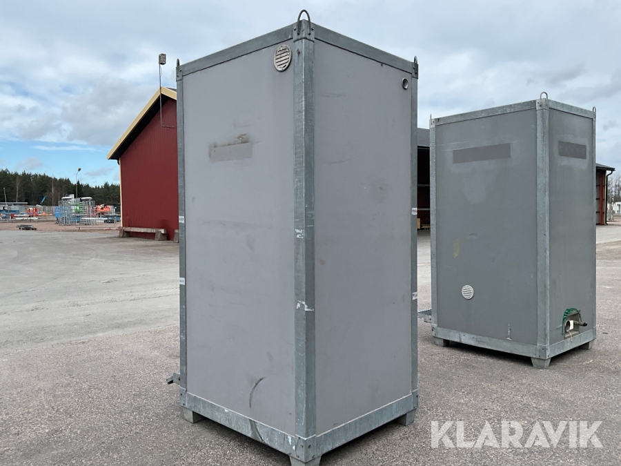For sheds and containers (10 feet and larger), loading assistance can be purchased. Payment is made either by invoice or by card at the seller's location. The cost per lift is SEK 500 + VAT.