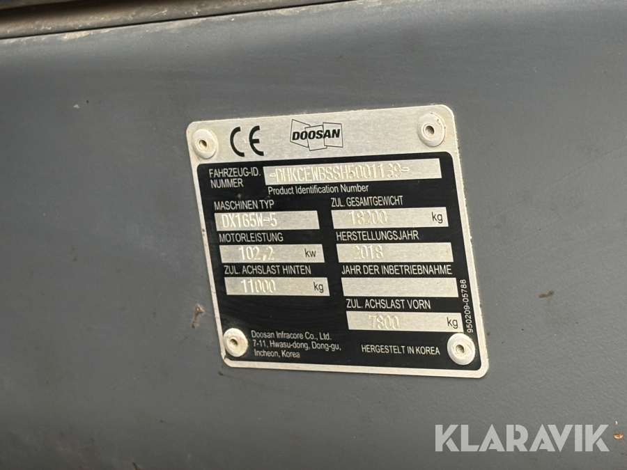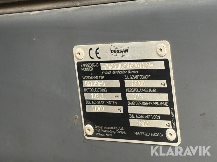 Grävmaskin Doosan DX165W-5