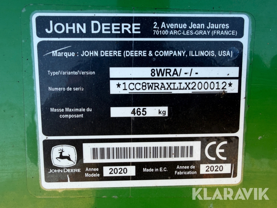 Slåtterkross med strängläggare John Deere 835/8WRA