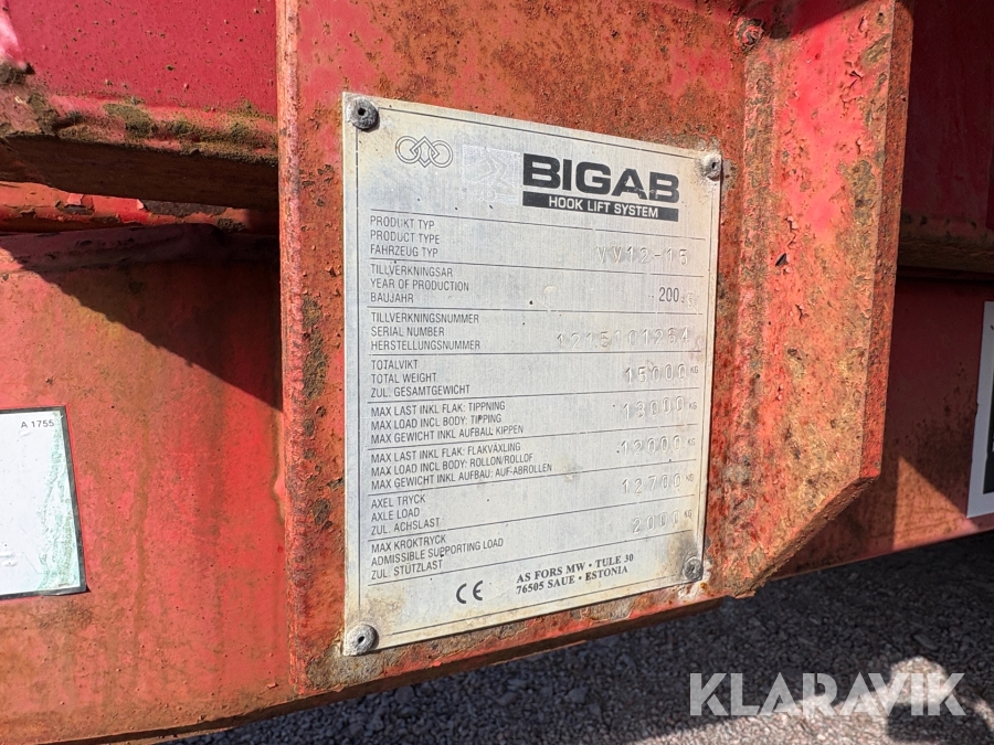Lastväxlarvagn Bigab 12-15 med flak