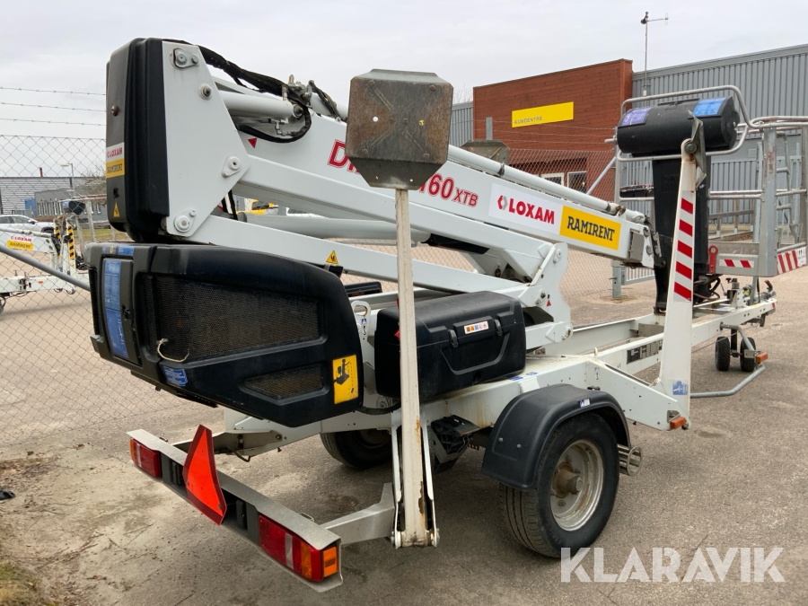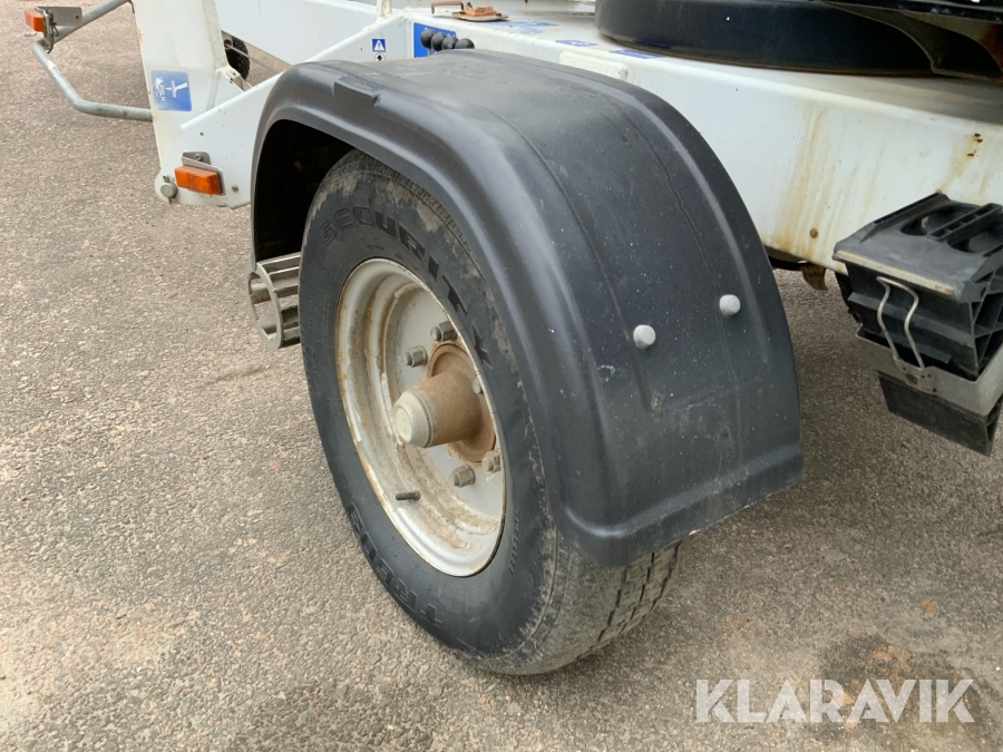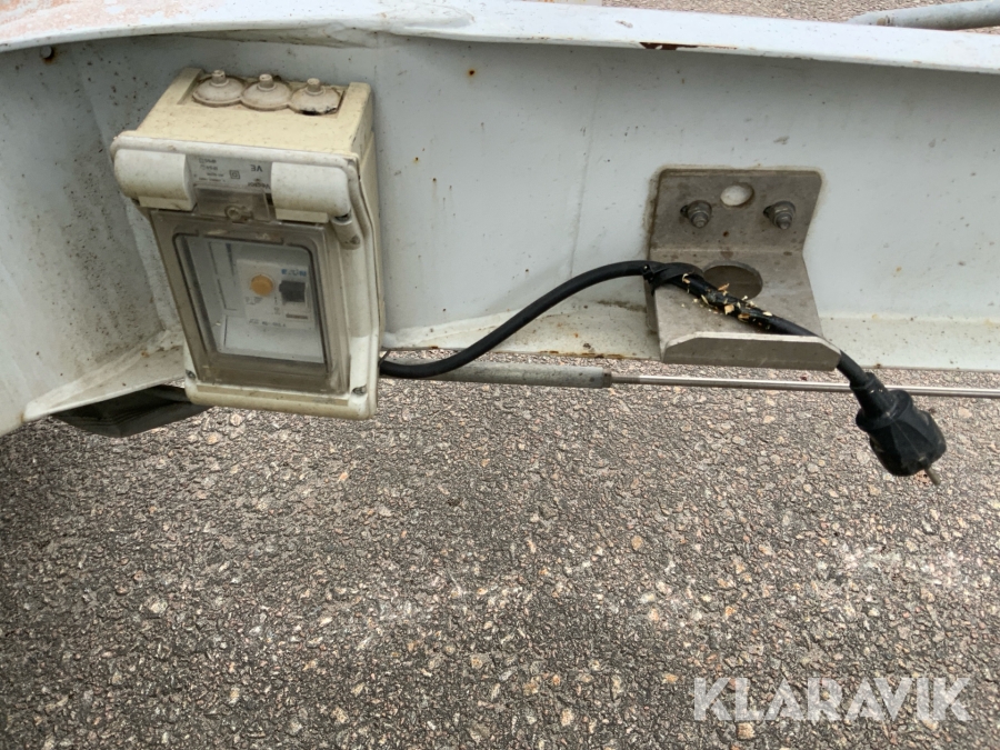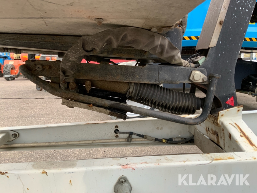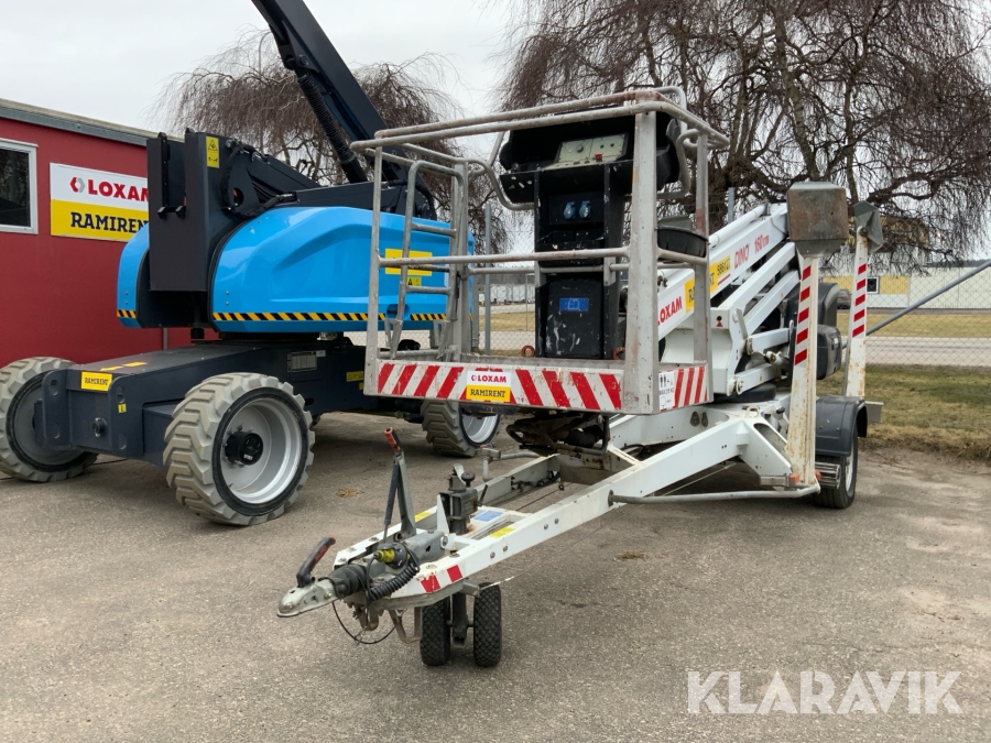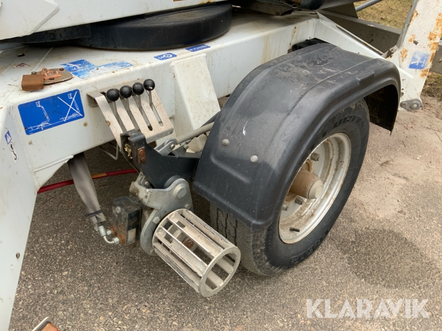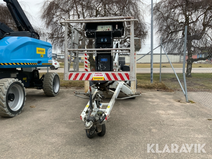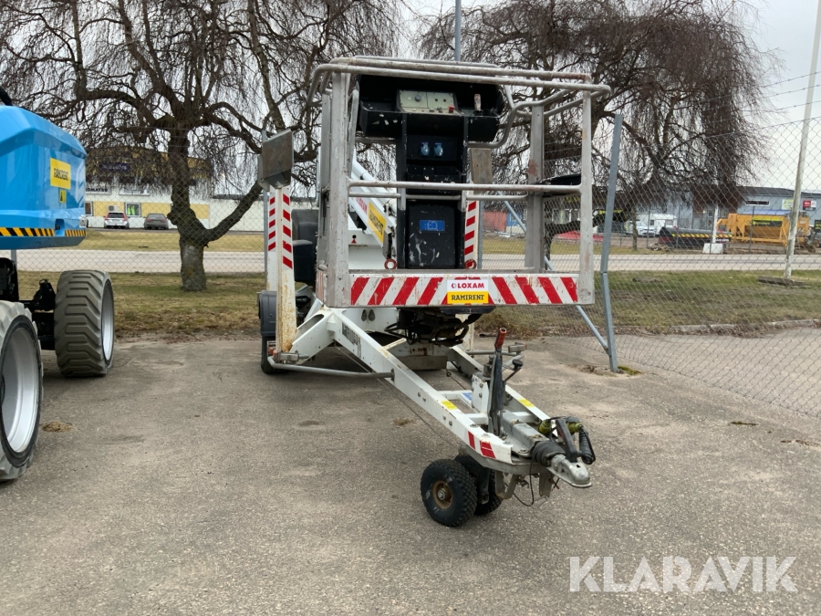 Släpvagnslift vikbom, batteridriven med 14meters plattformshöjd och 9,1 meter utligg.