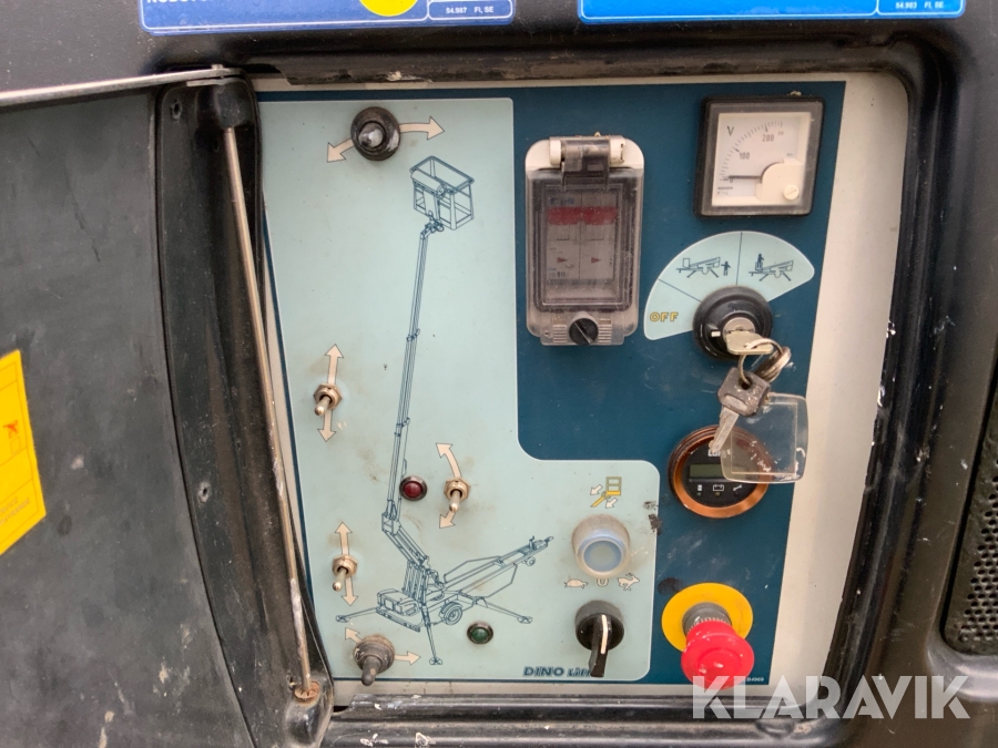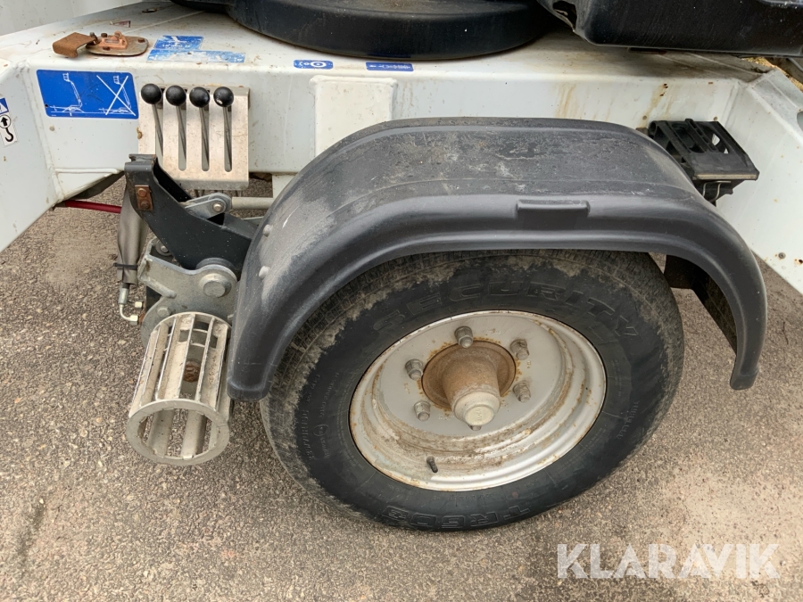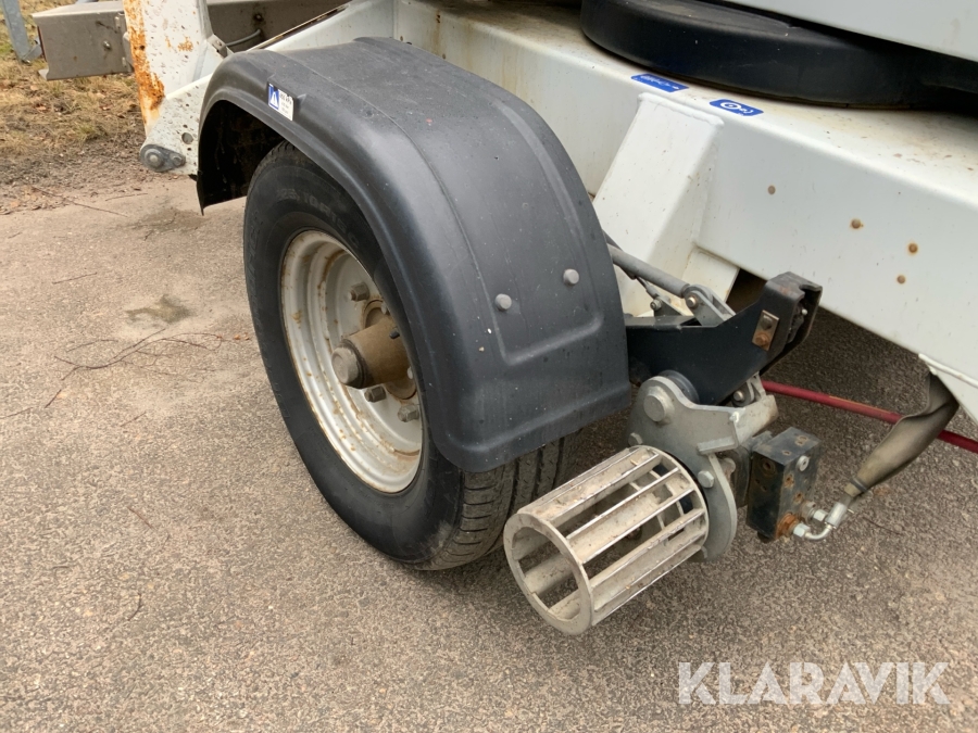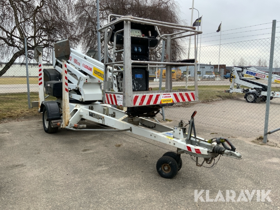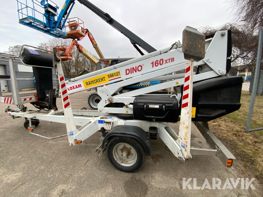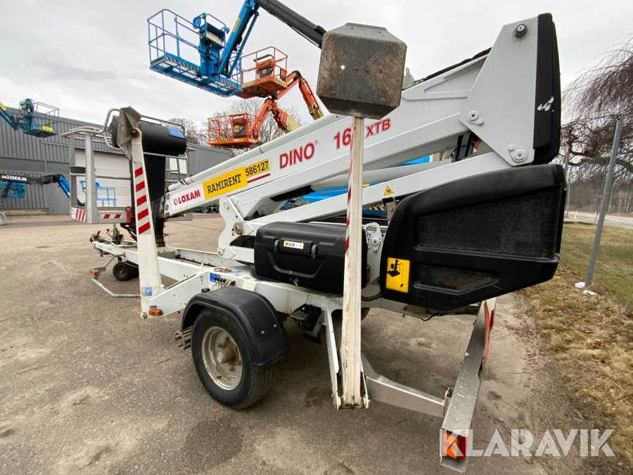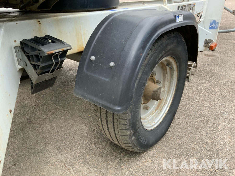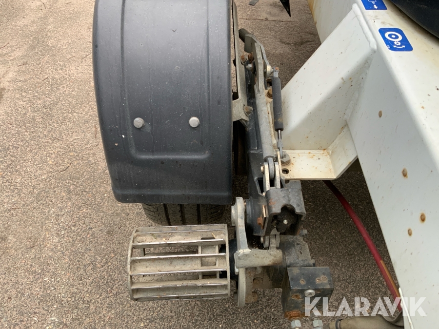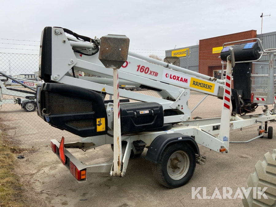 Släpvagnslift vikbom, batteridriven med 14meters plattformshöjd och 9,1 meter utligg.
