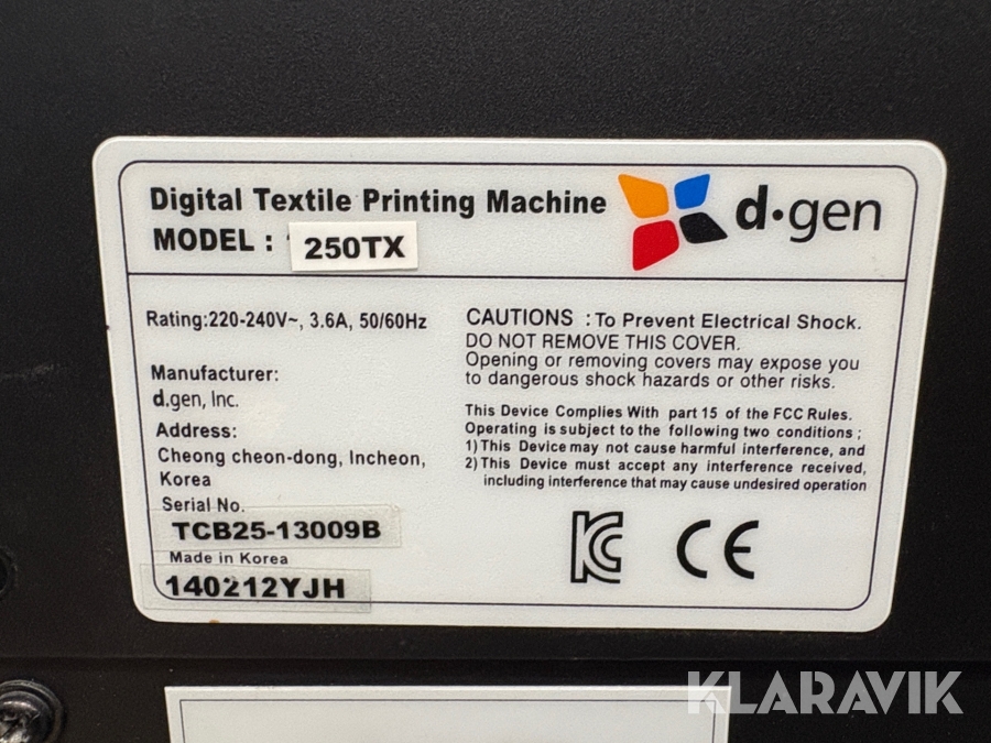 Textilskrivare D-gen Telios 250TX med skärmaskin och reservdelsmaskin