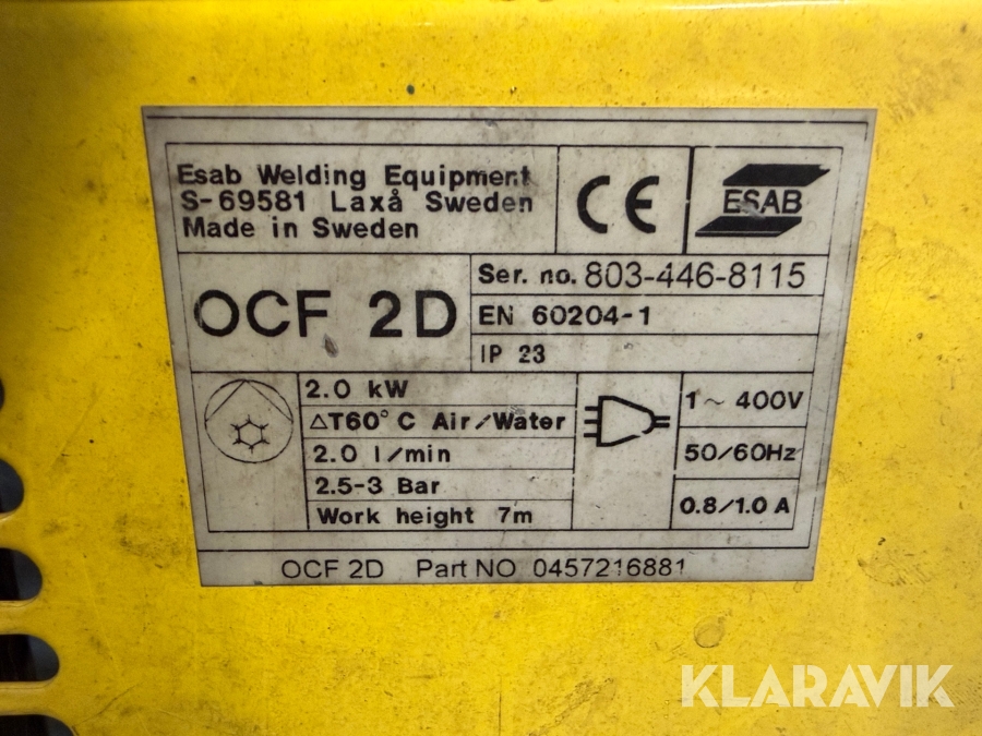Boka frakt? Det finns ingen specifik information om frakt för just det här objektet, men om du skickar oss en förfrågan via vårt fraktformulär, så undersöker vi möjligheten. Paket, EU-pall eller större maskin? Klaravik har fraktavtal med Schenker och i de fall vi kan hjälpa till med frakt gäller det objekt som ryms i paket eller inom en EU-pall (upp till 120*80 cm och 990 kg). Det går att beställa frakt inom Sverige, dock inte till utlandet. Vid frakt på större maskiner rekommenderar vi gärna transportföretag som du kan kontakta.