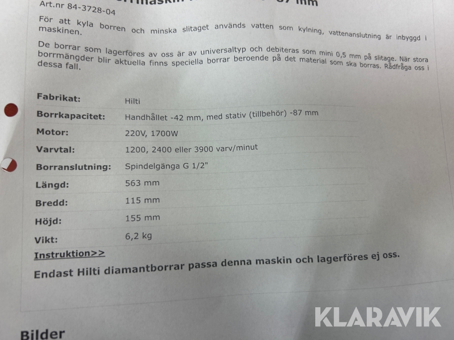 Boka frakt? Det finns ingen specifik information om frakt för just det här objektet, men om du skickar oss en förfrågan via vårt fraktformulär, så undersöker vi möjligheten. Paket, EU-pall eller större maskin? Klaravik har fraktavtal med Schenker och i de fall vi kan hjälpa till med frakt gäller det objekt som ryms i paket eller inom en EU-pall (upp till 120*80 cm och 990 kg). Det går att beställa frakt inom Sverige, dock inte till utlandet. Vid frakt på större maskiner rekommenderar vi gärna transportföretag som du kan kontakta.