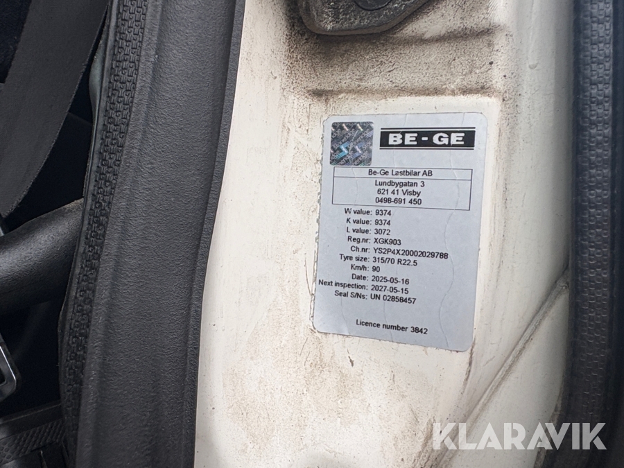 Kylbil Scania P270 med bakgavellyft
