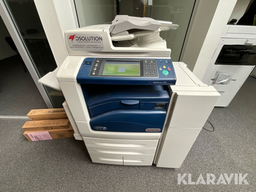 Multifunktionsskrivare Xerox WorkCentre 7855 med efterbehandlare.