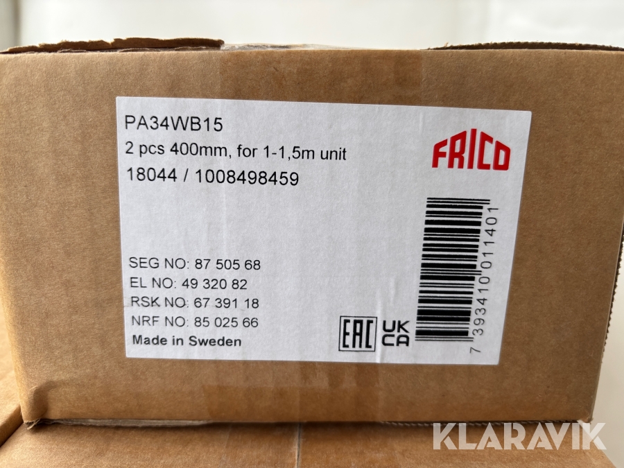Boka frakt? Det finns ingen specifik information om frakt för just det här objektet, men om du skickar oss en förfrågan via vårt fraktformulär, så undersöker vi möjligheten. Paket, EU-pall eller större maskin? Klaravik har fraktavtal med Schenker och i de fall vi kan hjälpa till med frakt gäller det objekt som ryms i paket eller inom en EU-pall (upp till 120*80 cm och 990 kg). Det går att beställa frakt inom Sverige, dock inte till utlandet. Vid frakt på större maskiner rekommenderar vi gärna transportföretag som du kan kontakta.