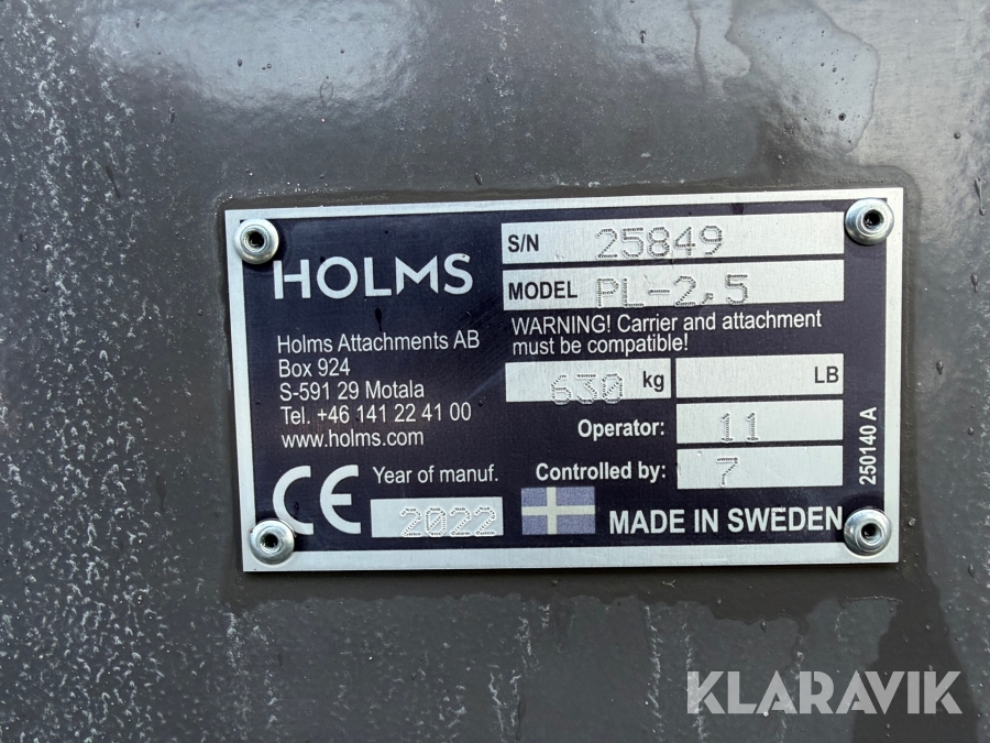 Sopmaskin Holms PL-2,5 med SMS/Trima fäste