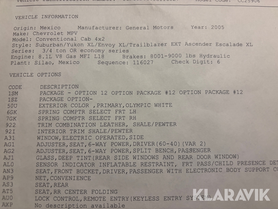 Pickup Chevrolet Suburban 2500LT 7-sits