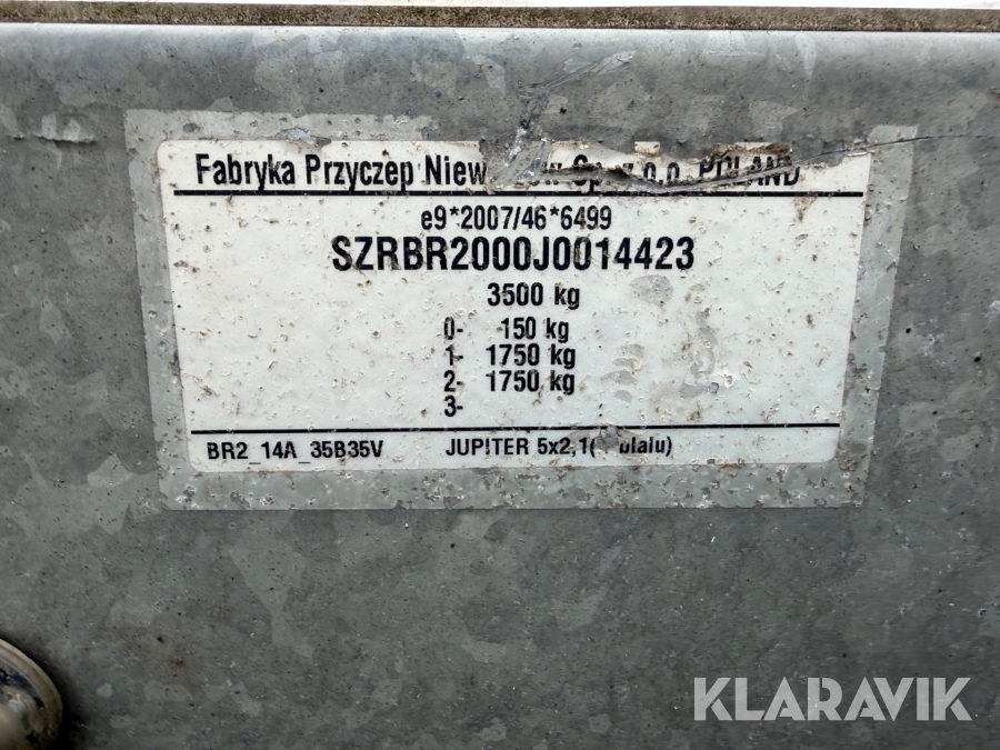 Maskinsläp Niewiadow 3.5 Ton helgalvat (Nybesiktigad)