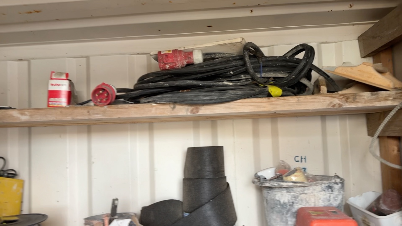 Container 8 fot med diverse murarverktyg