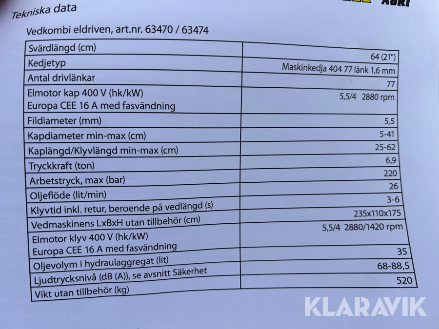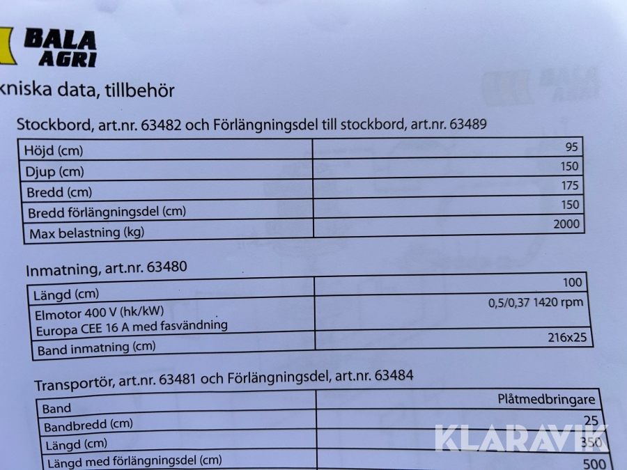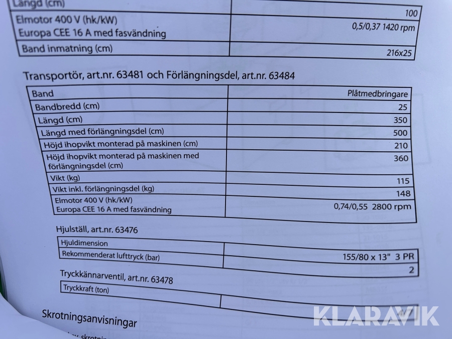 Boka frakt? Det finns ingen specifik information om frakt för just det här objektet, men om du skickar oss en förfrågan via vårt fraktformulär, så undersöker vi möjligheten. Paket, EU-pall eller större maskin? Klaravik har fraktavtal med Schenker och i de fall vi kan hjälpa till med frakt gäller det objekt som ryms i paket eller inom en EU-pall (upp till 120*80 cm och 990 kg). Det går att beställa frakt inom Sverige, dock inte till utlandet. Vid frakt på större maskiner rekommenderar vi gärna transportföretag som du kan kontakta.