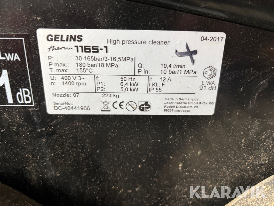 Hetvattentvätt Kränzle 1165-1