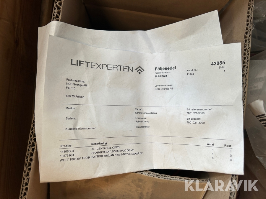 Boka frakt? Det finns ingen specifik information om frakt för just det här objektet, men om du skickar oss en förfrågan via vårt fraktformulär, så undersöker vi möjligheten. Paket, EU-pall eller större maskin? Klaravik har fraktavtal med Schenker och i de fall vi kan hjälpa till med frakt gäller det objekt som ryms i paket eller inom en EU-pall (upp till 120*80 cm och 990 kg). Det går att beställa frakt inom Sverige, dock inte till utlandet. Vid frakt på större maskiner rekommenderar vi gärna transportföretag som du kan kontakta.