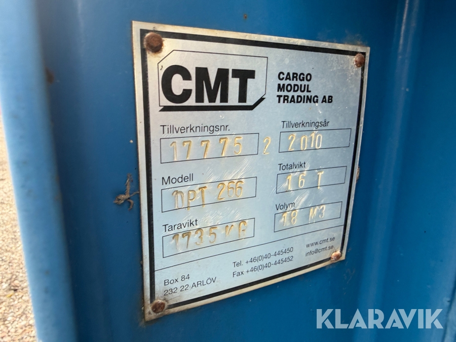 Boka frakt? Det finns ingen specifik information om frakt för just det här objektet, men om du skickar oss en förfrågan via vårt fraktformulär, så undersöker vi möjligheten. Paket, EU-pall eller större maskin? Klaravik har fraktavtal med Schenker och i de fall vi kan hjälpa till med frakt gäller det objekt som ryms i paket eller inom en EU-pall (upp till 120*80 cm och 990 kg). Det går att beställa frakt inom Sverige, dock inte till utlandet. Vid frakt på större maskiner rekommenderar vi gärna transportföretag som du kan kontakta.