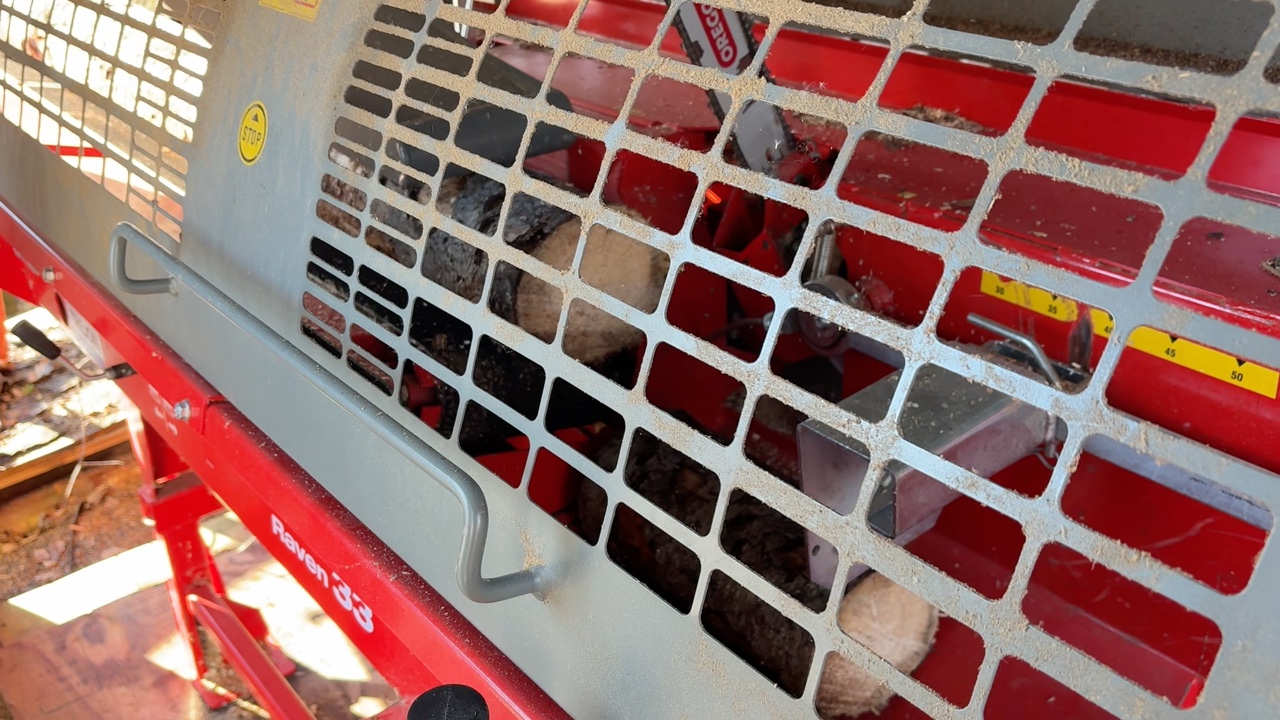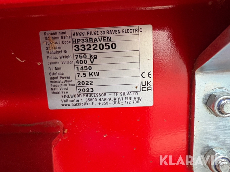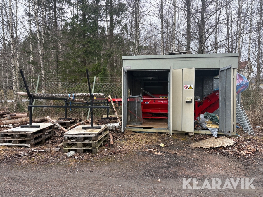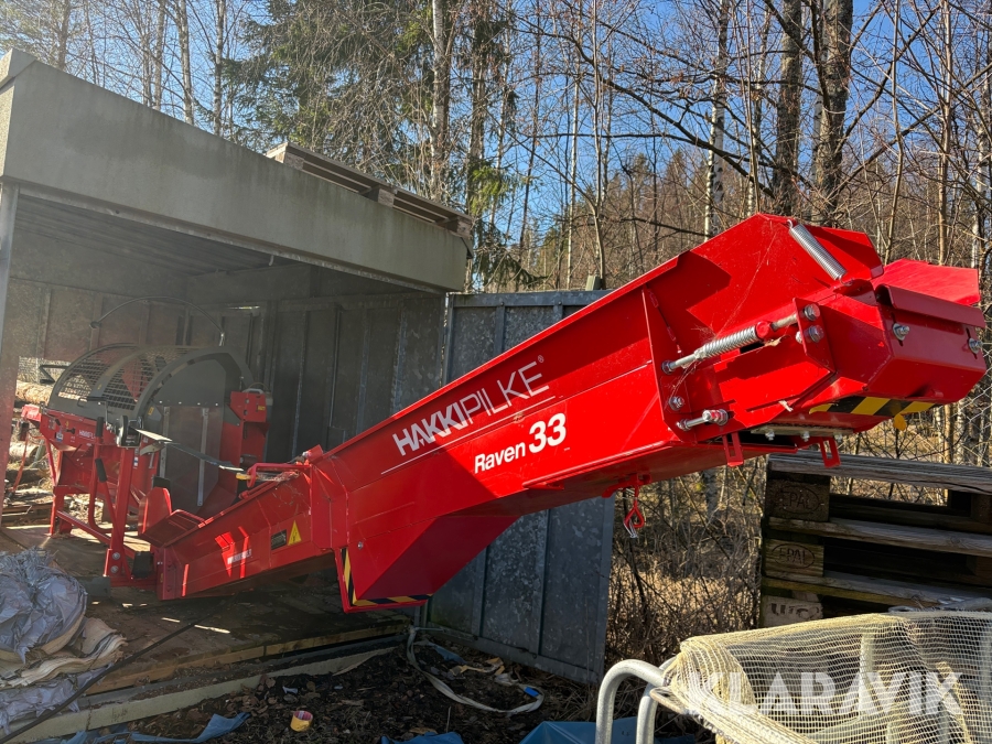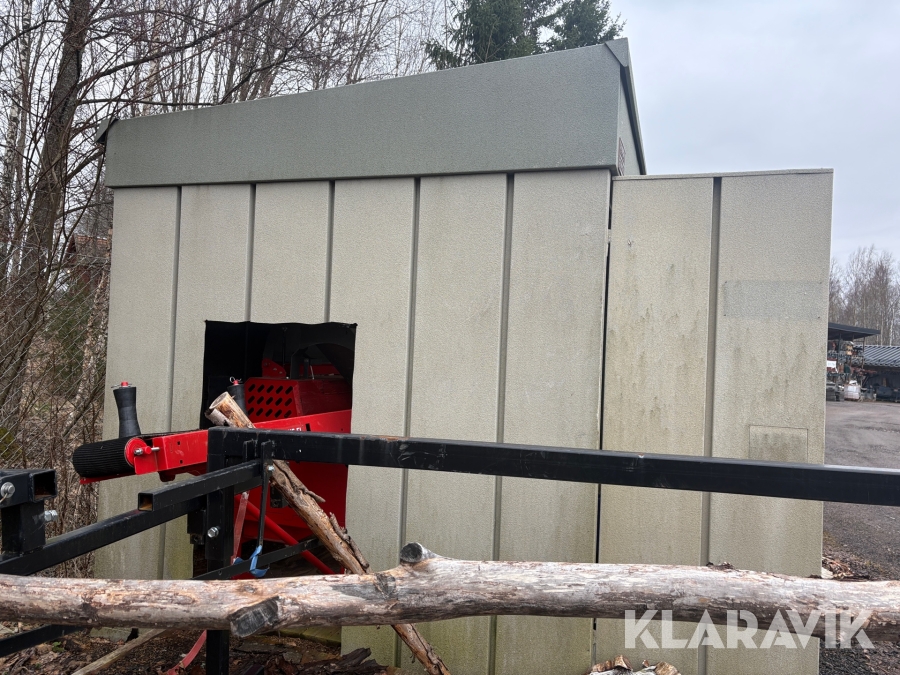 Vedmaskin Hakkipilke Raven 33 komplett med tillhörande skjul och virke