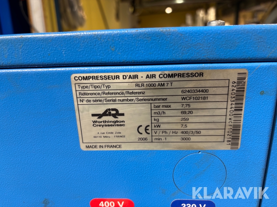 Kompressor Worthington Creyssensac Rollair 1000t