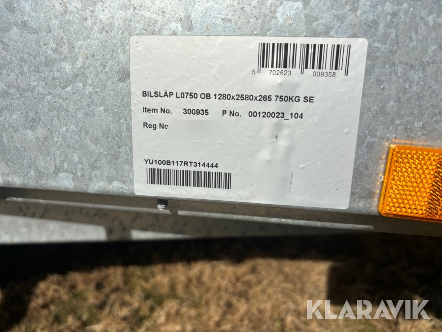 Personbilssläp Fogelsta Lo750OB inkl jacsalhuv