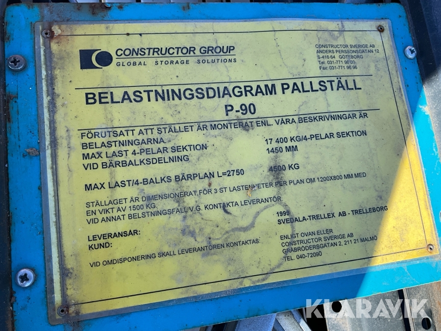 Pallställ för tung last Hövik P90