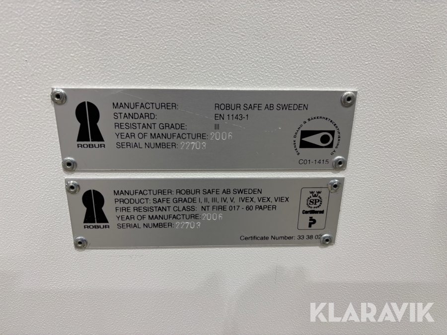 Kassaskåp Robur Safe AB EN 1143-1
