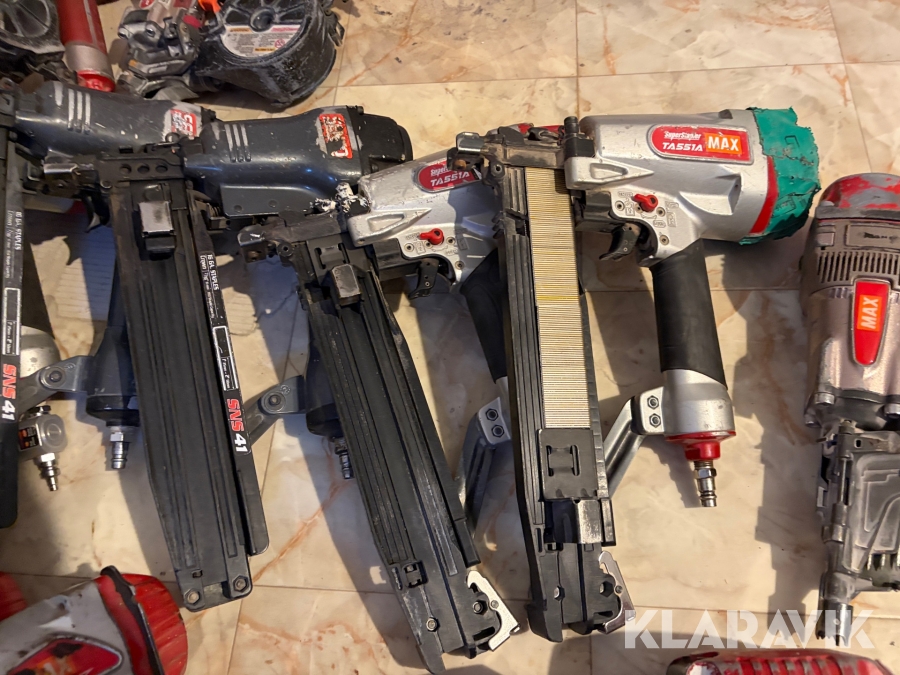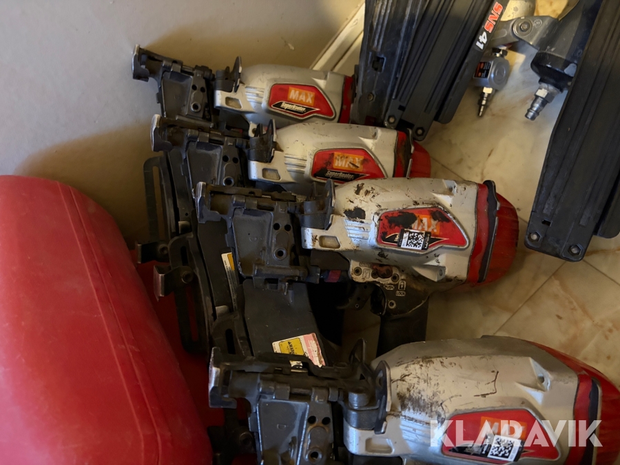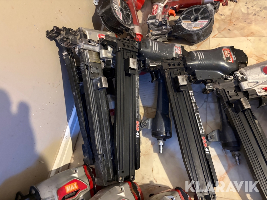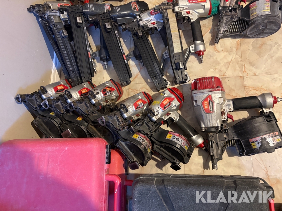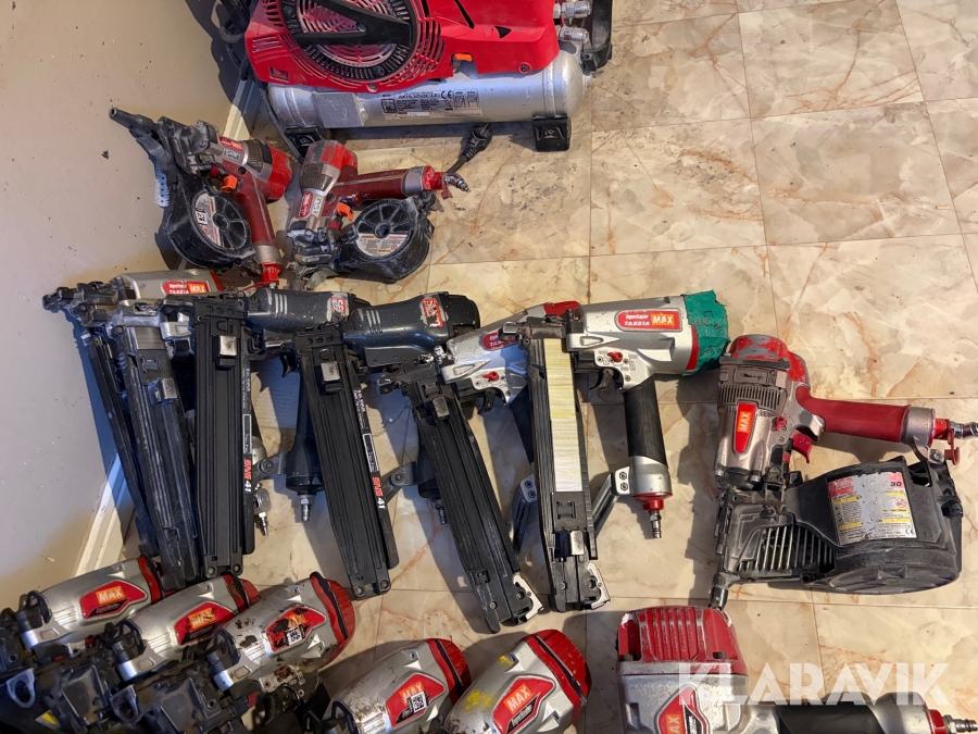 Stort parti med spikpistoler, slang och kompressorer MAX/Senco