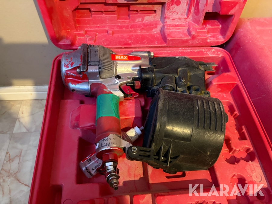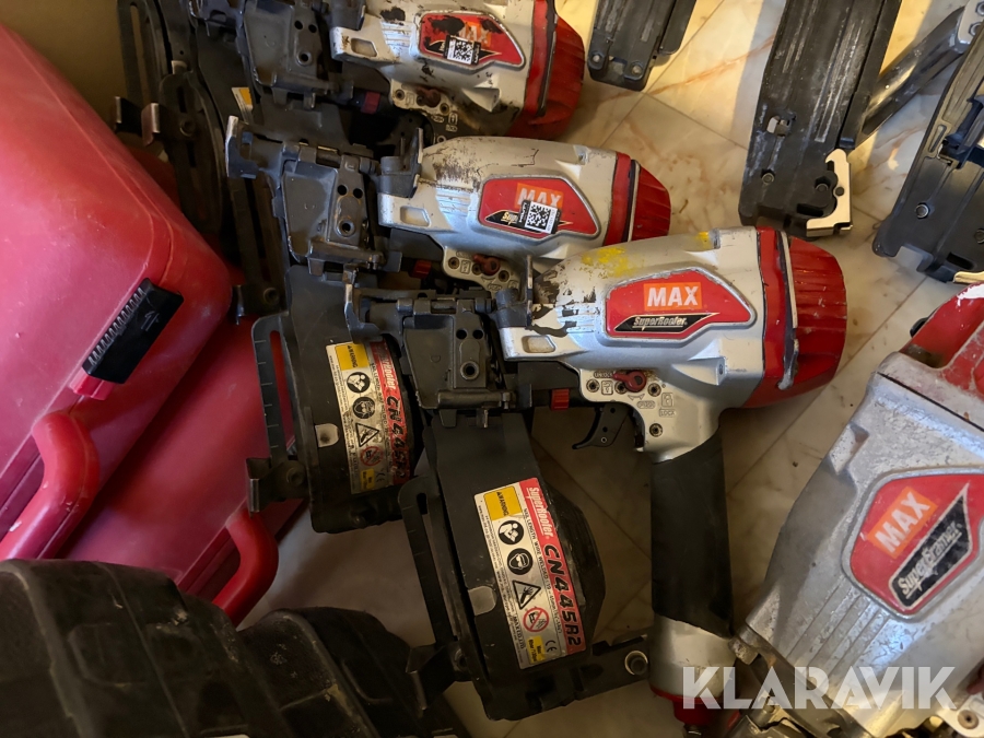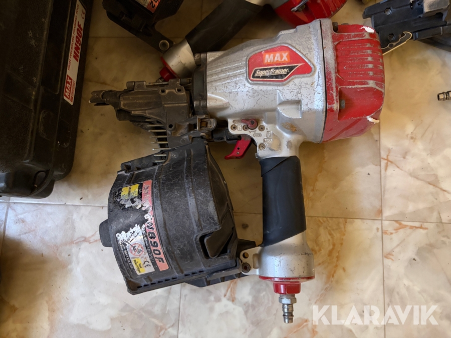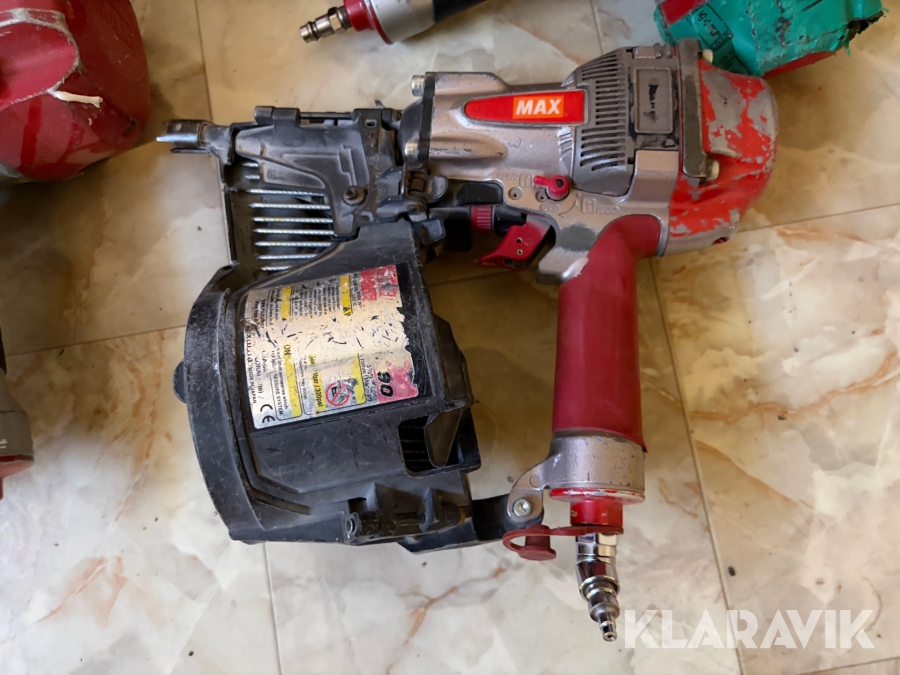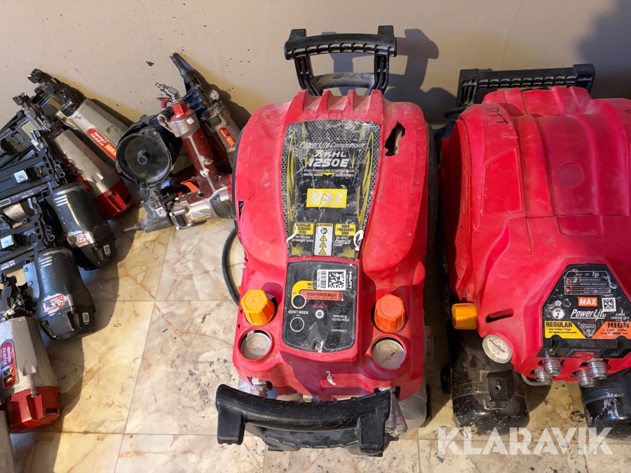 Stort parti med spikpistoler, slang och kompressorer MAX/Senco