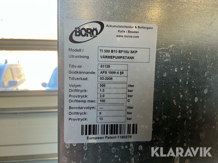 Värmepumptank Borö 500 med tillbehör
