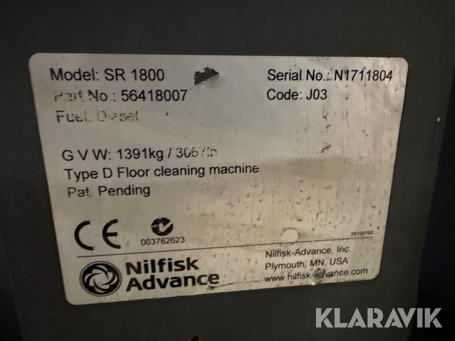 Sandsopningsmaskin Nilfisk SR 1800