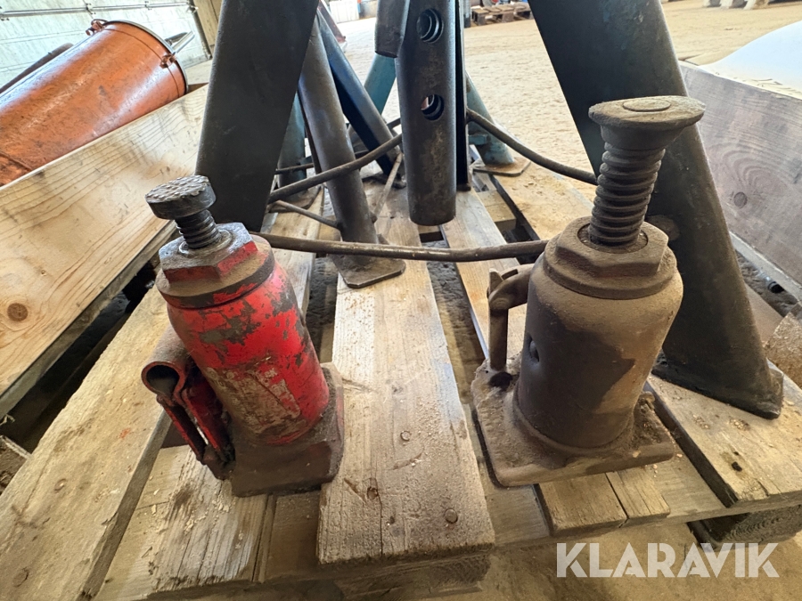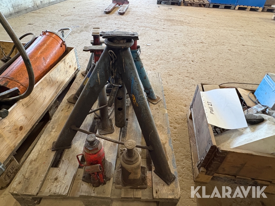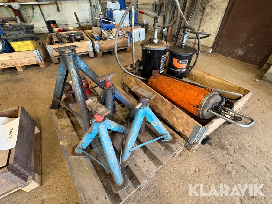 Parti med pallbockar samt domkrafter