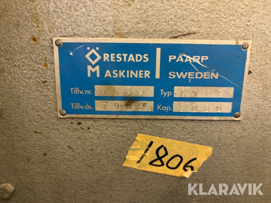 Boka frakt? Det finns ingen specifik information om frakt för just det här objektet, men om du skickar oss en förfrågan via vårt fraktformulär, så undersöker vi möjligheten. Paket, EU-pall eller större maskin? Klaravik har fraktavtal med Schenker och i de fall vi kan hjälpa till med frakt gäller det objekt som ryms i paket eller inom en EU-pall (upp till 120*80 cm och 990 kg). Det går att beställa frakt inom Sverige, dock inte till utlandet. Vid frakt på större maskiner rekommenderar vi gärna transportföretag som du kan kontakta.